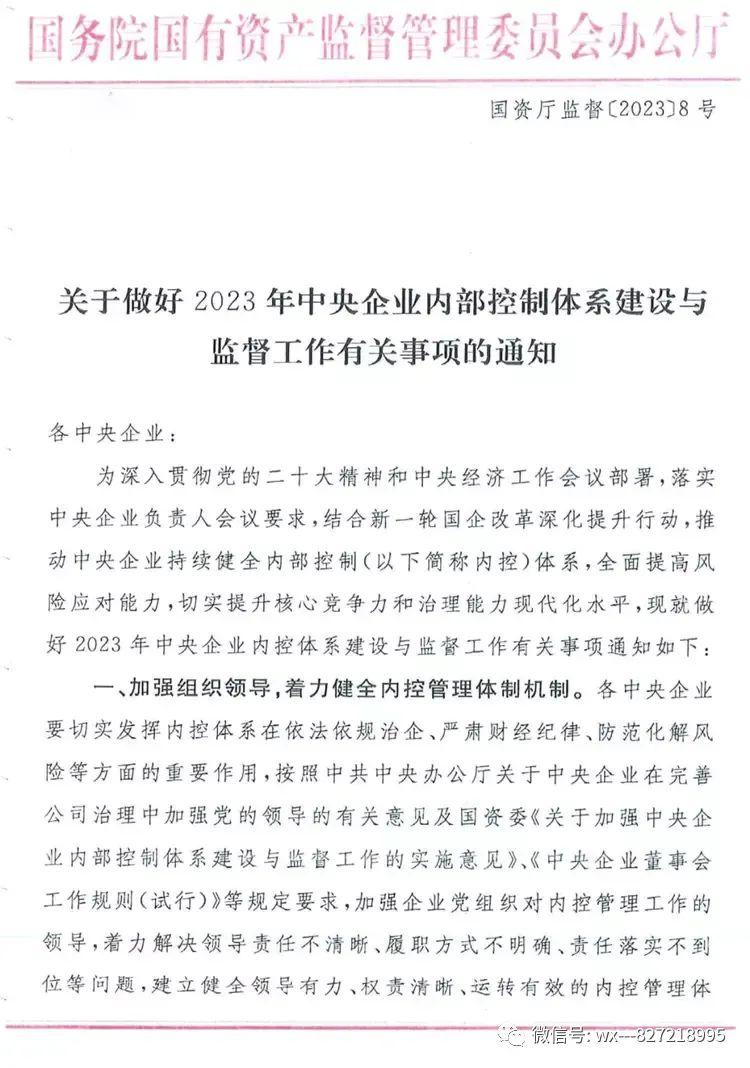 关于做好2023年中央企业内部控制体系建设与监督工作有关事项的通知