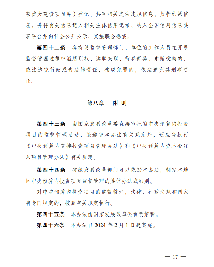 《中央预算内投资项目监督管理办法》已经2023年12月26日第7次委务会议审议通过,现予公布,自2024年2月1日起施行。